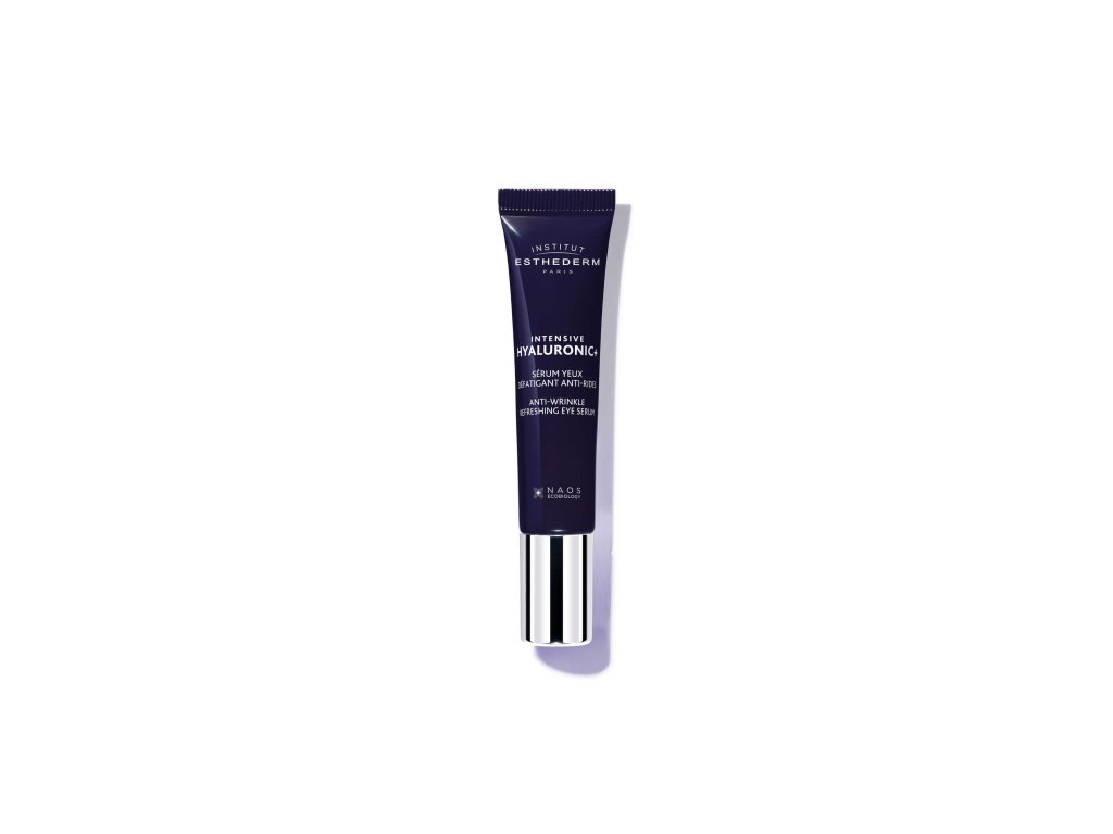 Intensive Hyaluronic+ Hydratačné očné sérum proti vráskam 15 ml – vyhladzujúce očné sérum s patentovanou technológiou HYALURONIC+, ktorá kombinuje vysokomolekulárnu, enkapsulovanú a acetylovanú kyselinu hyalurónovú spolu s polyglutamovou kyselinou, kofeínom a peptidom proti opuchom. Vyhladzuje linky, redukuje opuchy a tmavé kruhy, revitalizuje pohľad. Jemná, svieža textúra bez parfumácie.